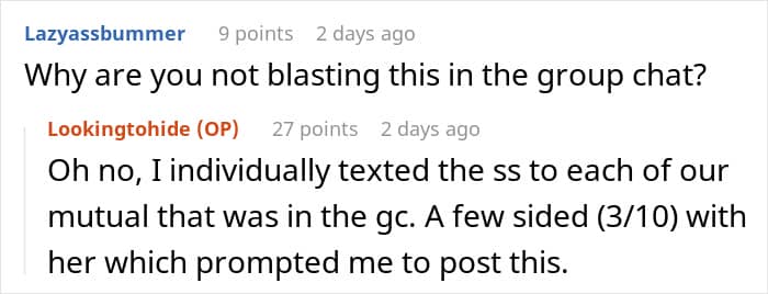 The author of the post also shared the chat she’d had with the mom-to-be