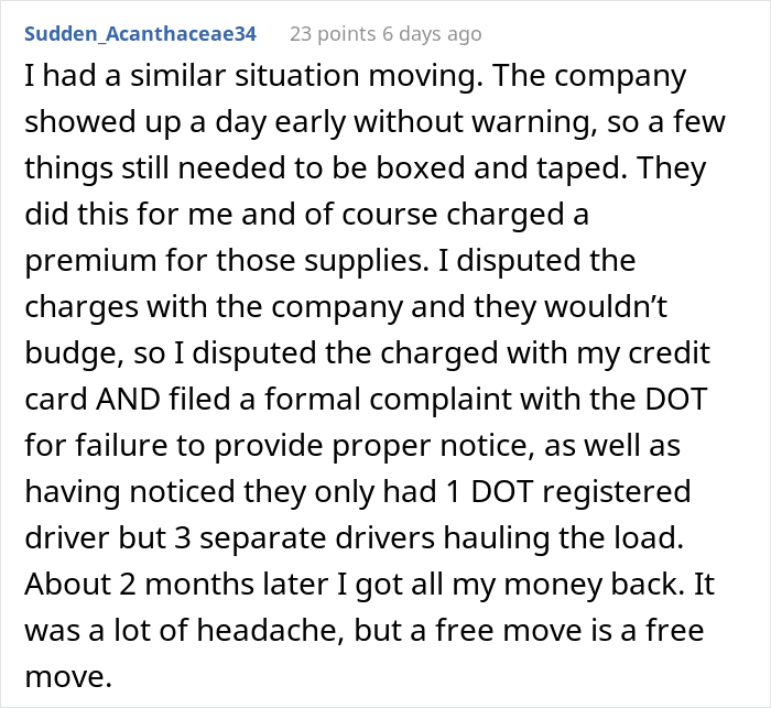 Later, the author of the post clarified that the storage company finally paid her back for all the unnecessary fuss