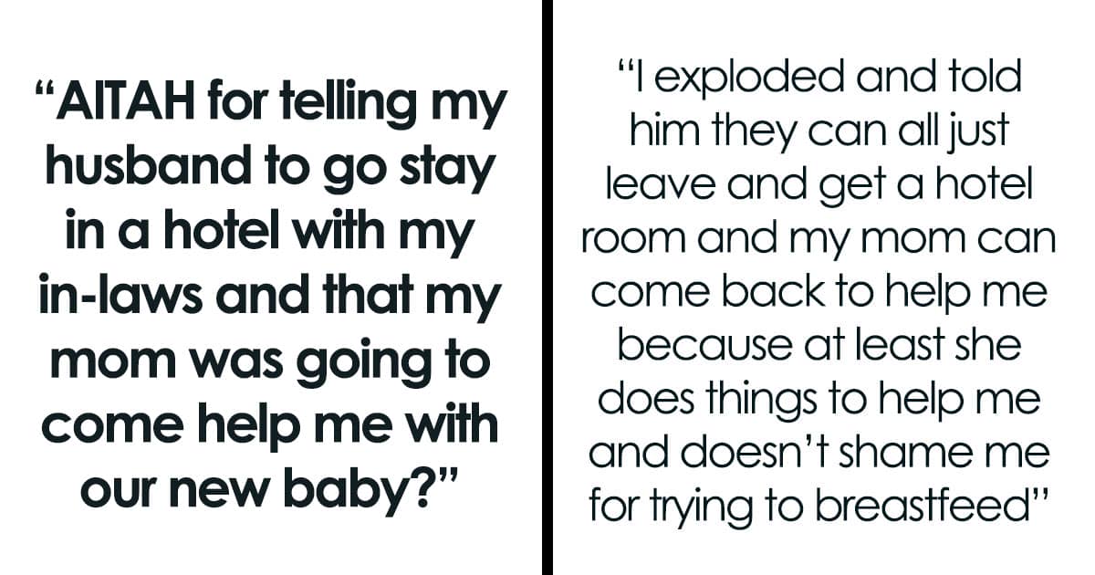 A new mom asked the internet if she was wrong to snap and demand that her husband and his parents stay at a hotel. Her mother-in-law, instead of being kind and caring, kept criticizing her, yelled at her, and threw around ridiculous accusations about ‘hogging’ the baby. Keep scrolling for the full story, as well as the internet’s advice for the distraught mom.