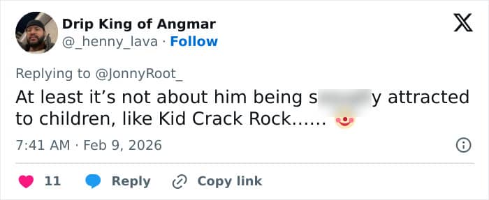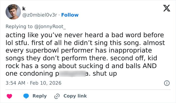 After Kid Rock was announced as the headliner, many sparked backlash online and pointed out his problematic lyrics about underage girls from the past.