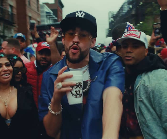 While Bad Bunny was performing Tití Me Preguntó, he was seen stopping by a street vendor selling piragua (Puerto Rican shaved ice). Piragua stands are commonly found on the island, selling the shaved ice with flavored syrup on top.