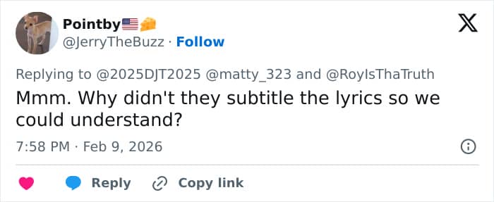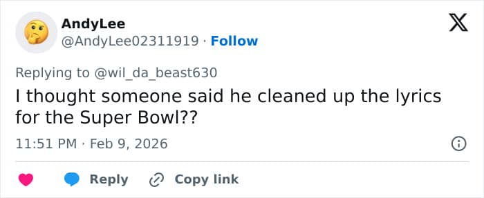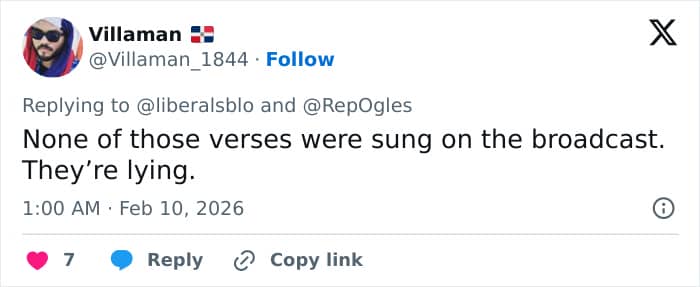One asked Rep. Andy Ogles, “Are there not more pressing issues to be addressing than… *checks notes* …a 15 minute halftime show?”