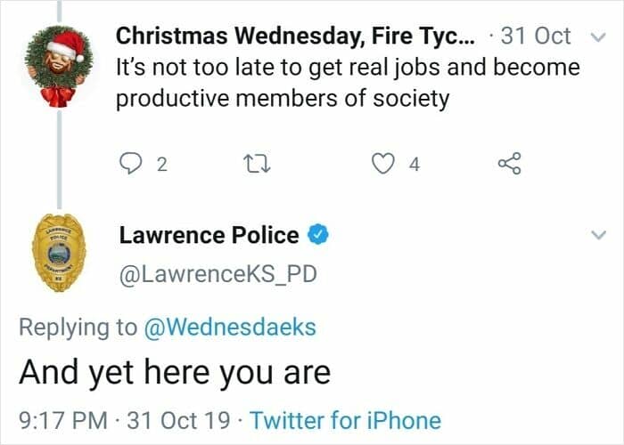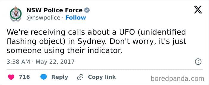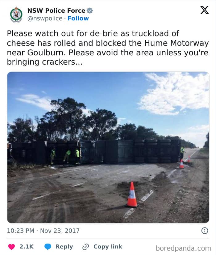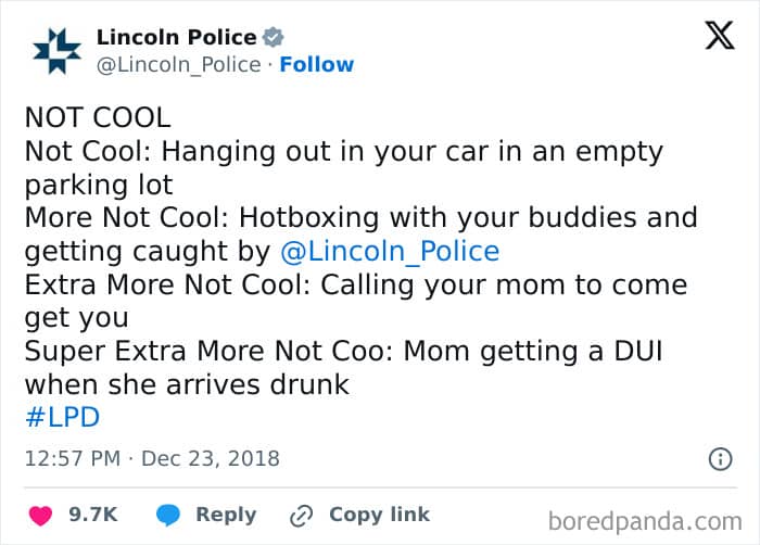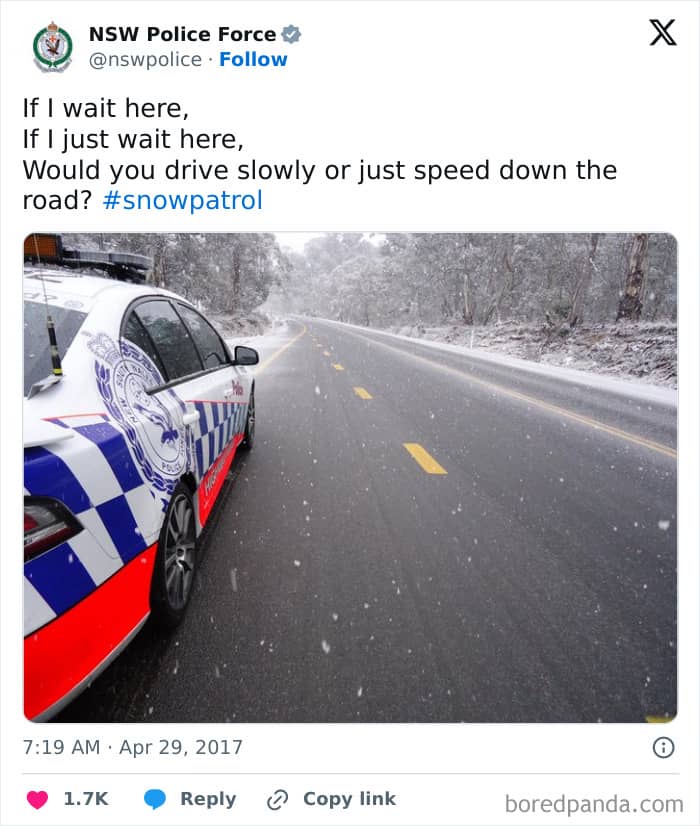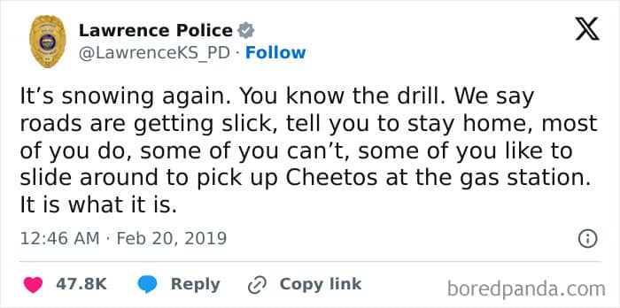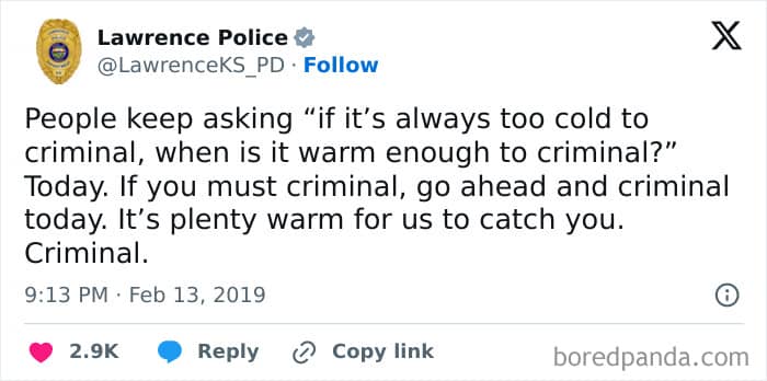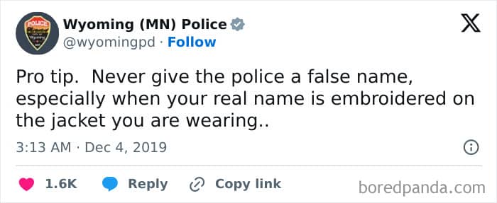 You won’t expect some of these one-liners from official police department pages. And when you do, it’s definitely something you would take a screenshot of. A lot of these are, indeed, comedy gold.