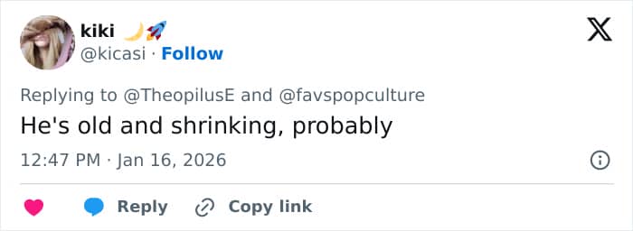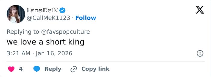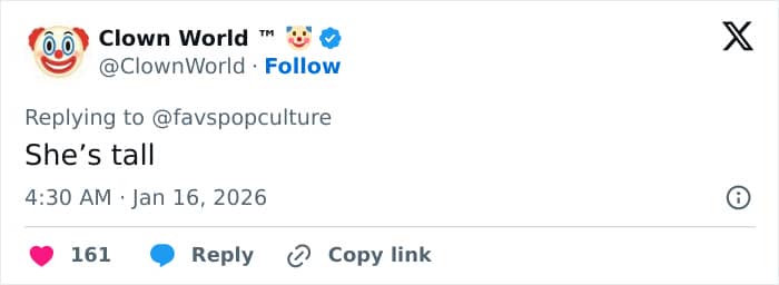 “Finally, a woman he can look up to,” a reader wrote, noting how taller the model appeared when walking alongside the actor.