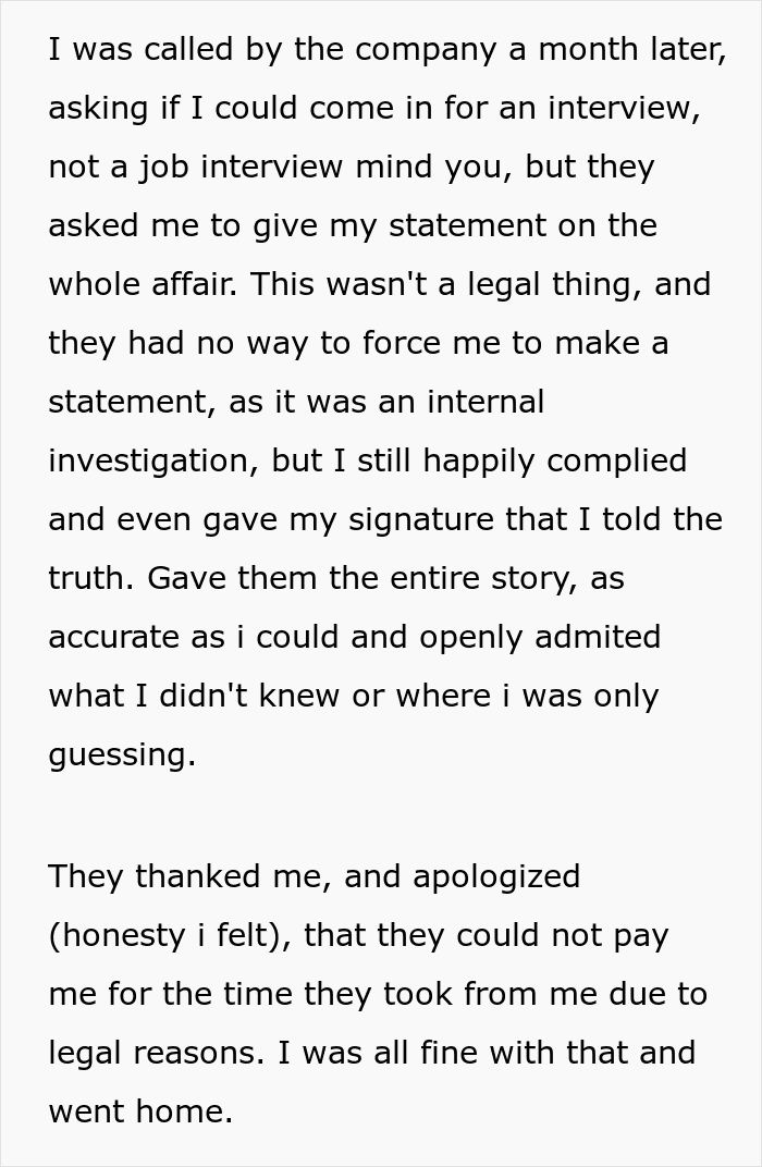 As a result, after some time, top management representatives arrived to investigate everything. Freddy and Igor were fired, and the managers issued a formal apology to OP as well. At least he hopes the apology was sincere…
