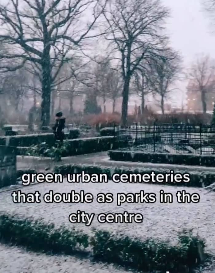 “It is common to see people walking, jogging, pushing strollers, walking dogs, or even meeting friends for fika in the cemeteries. Seeing the way the cemeteries have been adapted to urban life was very new for me”