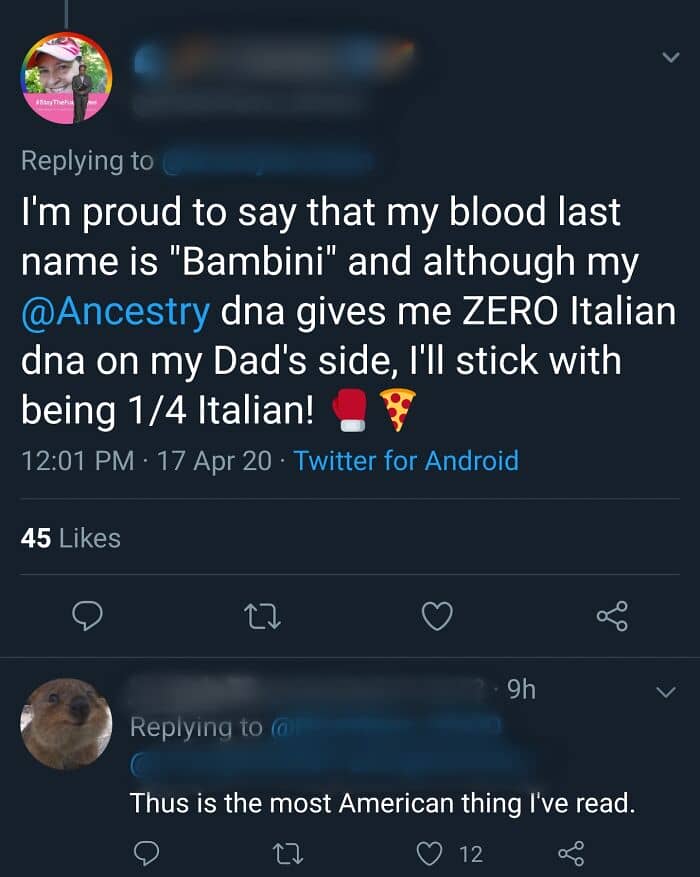 #24 “Although My Ancestry DNA Gives Me Zero Italian DNA On My Dad’s Side, I’ll Stick With Being 1/4 Italian”