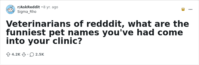 Working as a vet can be incredibly stressful and challenging, yet also deeply fulfilling. And it helps if you and your clients have a good sense of humor. Like when you realize that you’ll be treating pets with the names Big Dog, Chicken Salad, and Greg From Accounting.