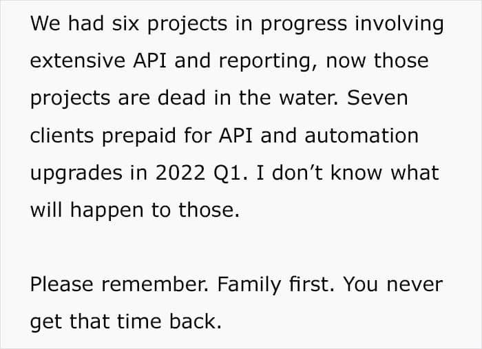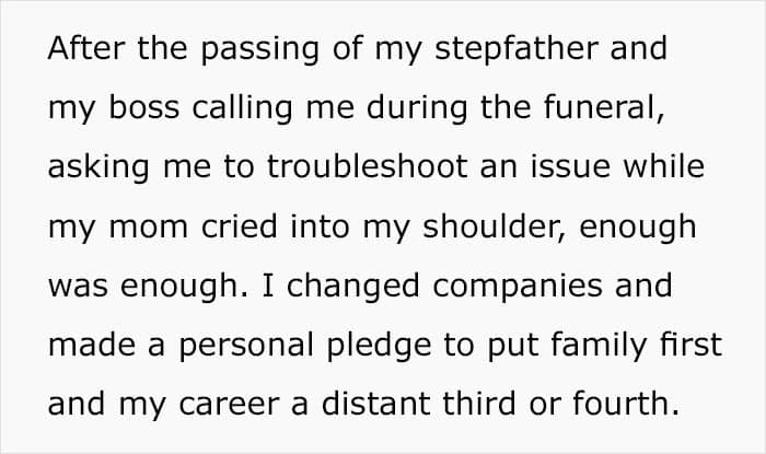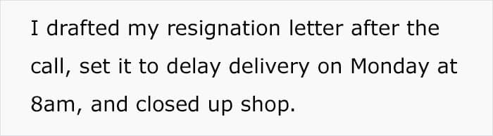 However, after having sacrificed their time with their loved ones for long enough, the employee took a stance for what’s important in their life and simply handed in their resignation instead.
