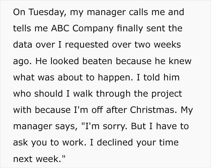 In a now-deleted post, an anonymous Reddit user described in great detail the lousy Christmas gift they received from their company—a change of plans which forced them to cancel the vacation they had already planned with their family.