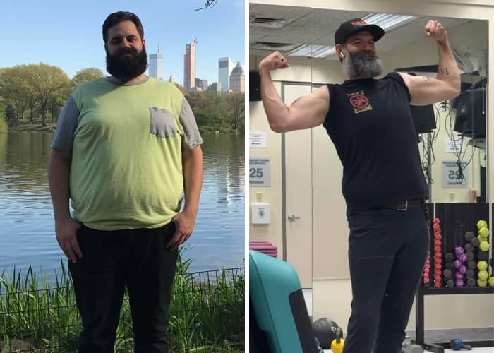 Literally half the man I used to be! Only took 10 1/2 months. Still working on it! Lost first 50 by just changing my diet to proteins. Nuts, deli meats, grilled chicken, white rice, cheeses, crackers, quit soda, quit drinking, quit sugar. That gained me entry into the gastric bypass program because before I changed my diet I went into complete renal kidney failure.