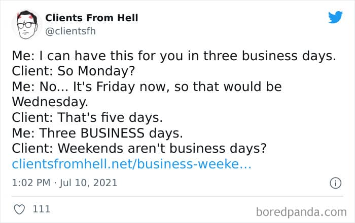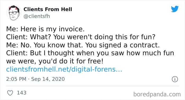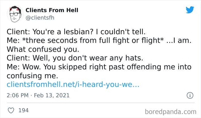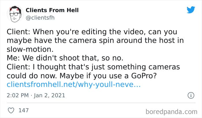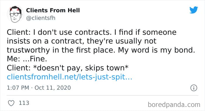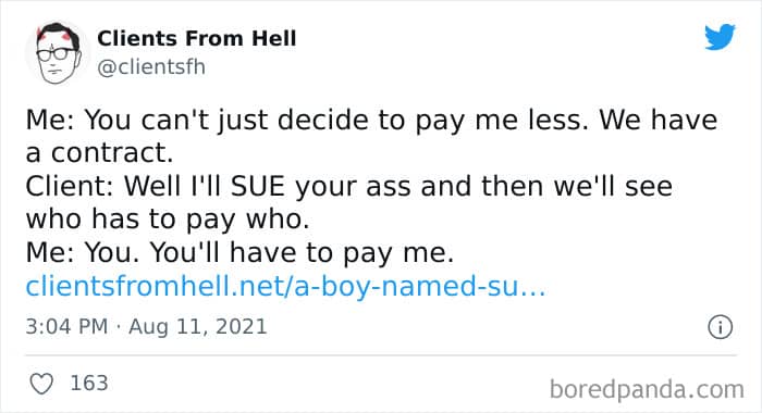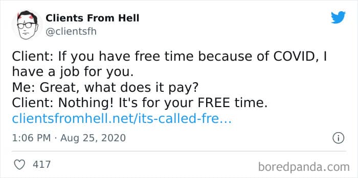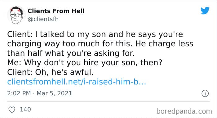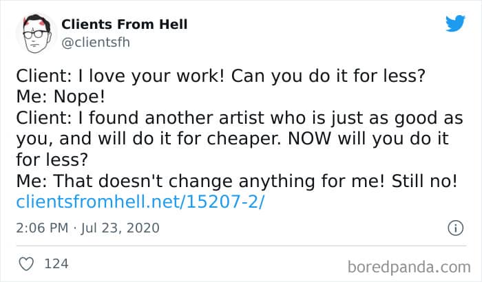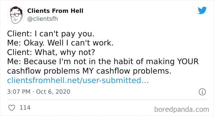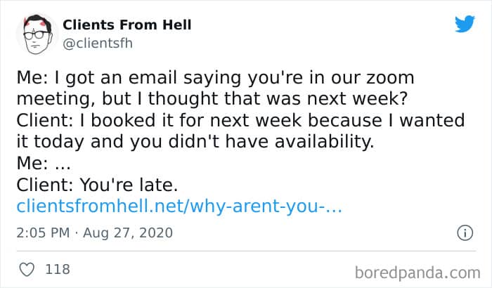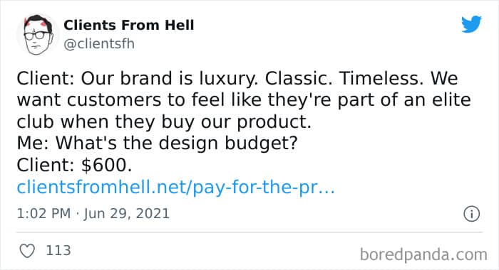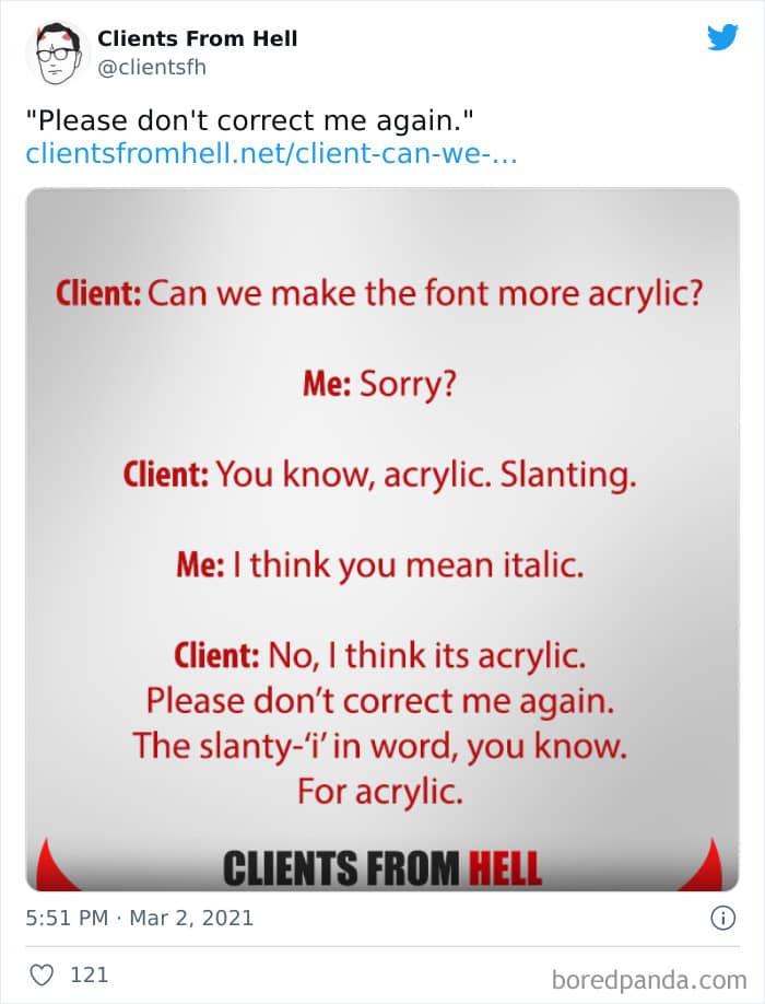 The ‘Clients From Hell’ online project moved to ‘Not Always Right’ in mid-December, 2021. Founded way back in 2009, CFH, by their own admission, wasn’t getting the audience that it used to. So, in order to revitalize things, they rebranded. The CFH Twitter page has over 81.1k followers, while the NAR Facebook page has over a quarter of a million followers.