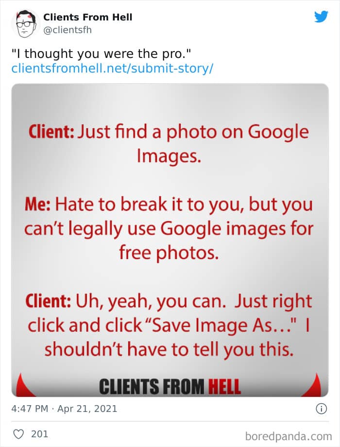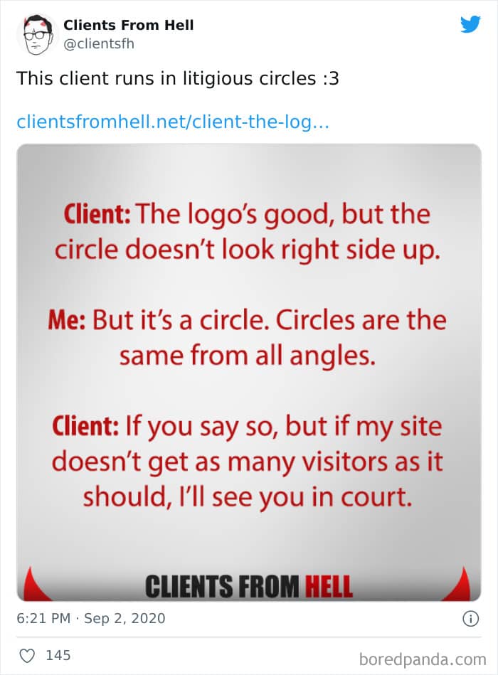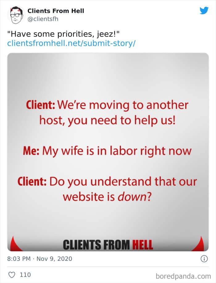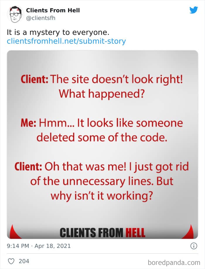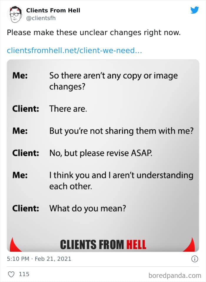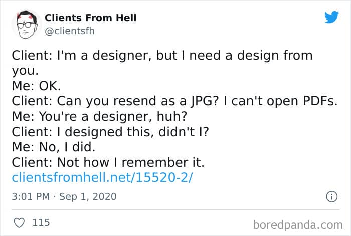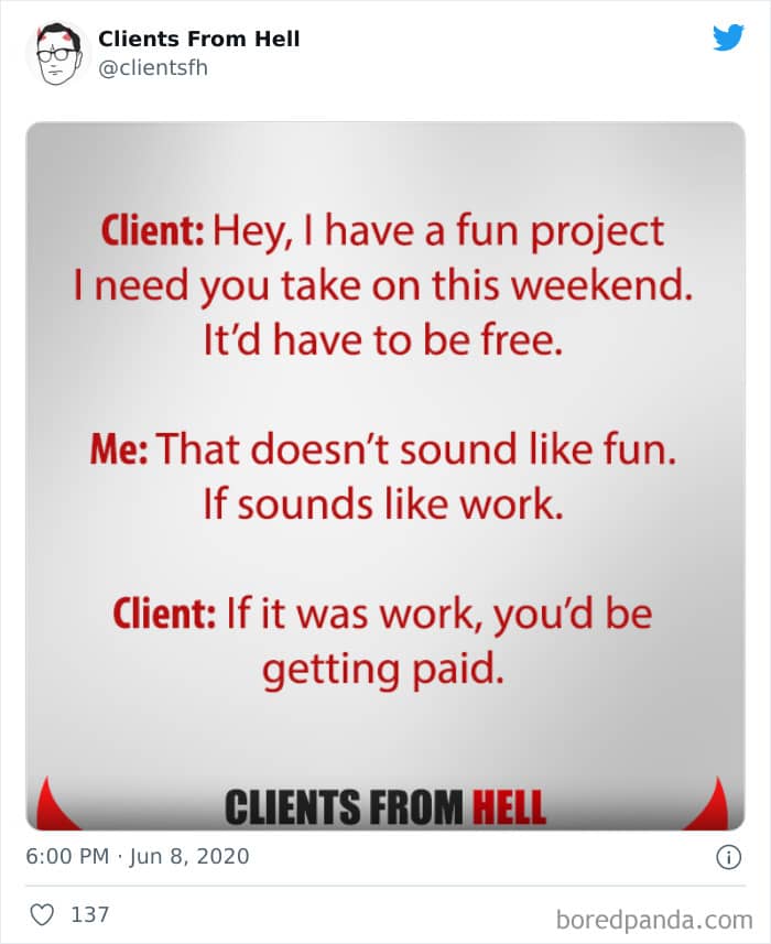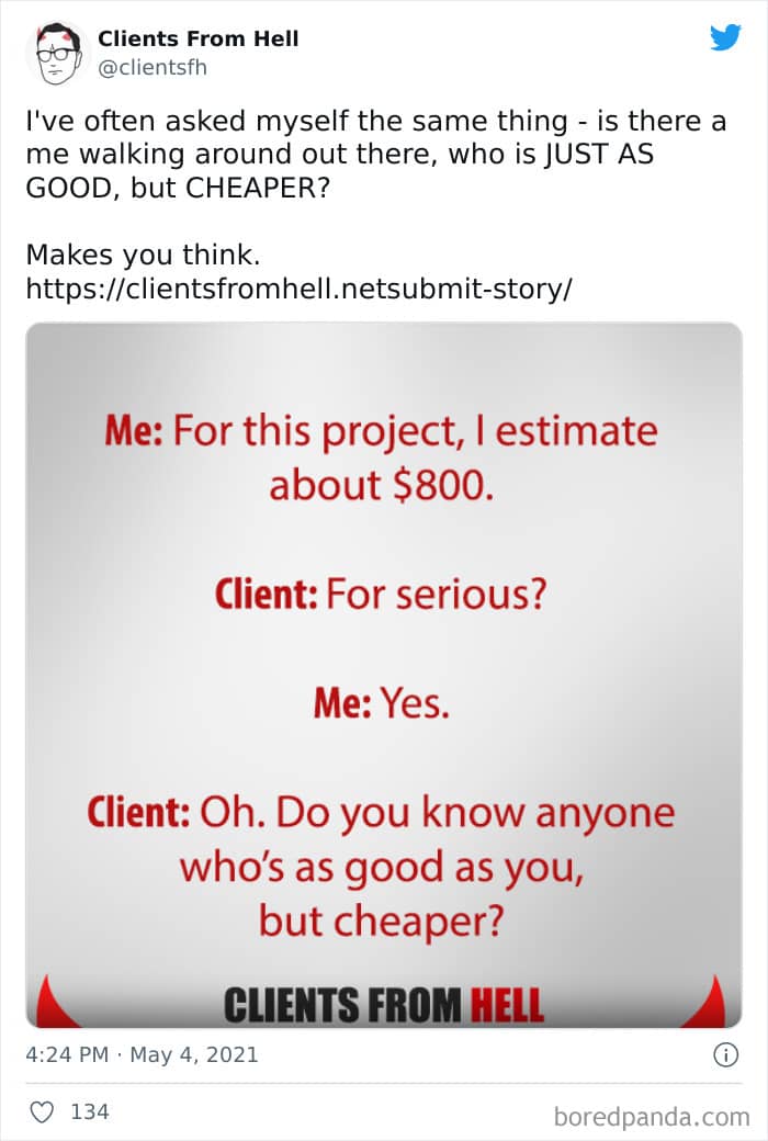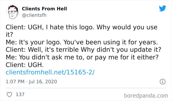 The ‘Clients From Hell’ project (now rebranded as ‘Not Always Right’) shares stories about the most memorable and hilarious tales of dealing with rude, entitled, or simply downright dumb customers. Today we’re featuring the experiences of freelancers and designers. Remember to upvote your fave posts as you scroll down, Pandas.