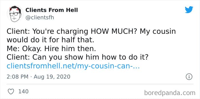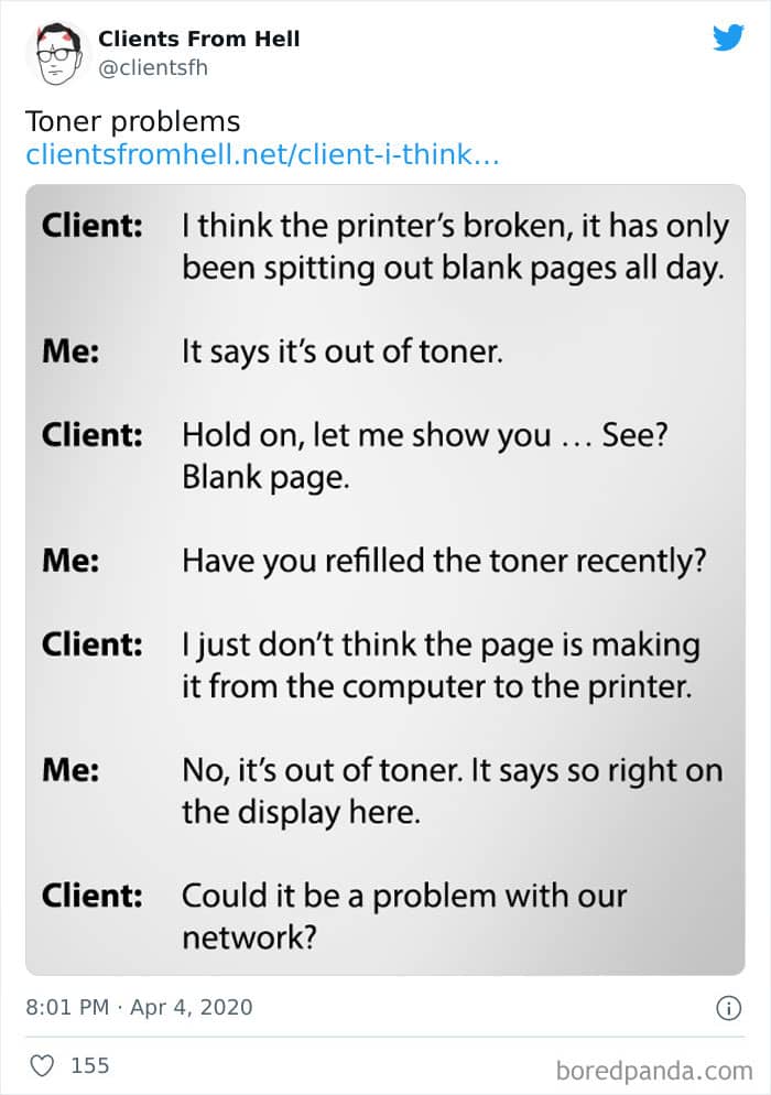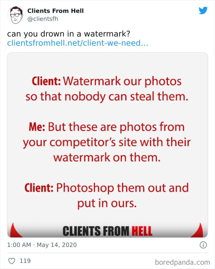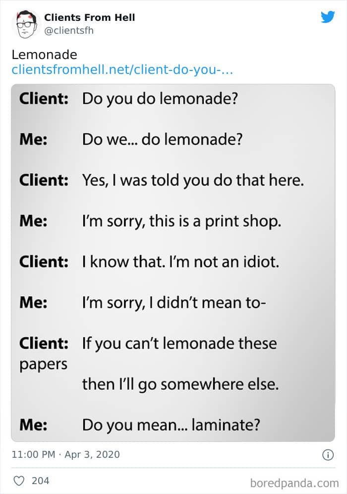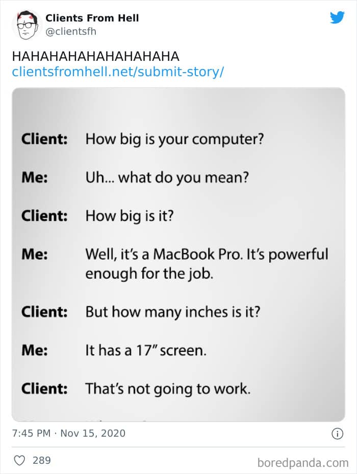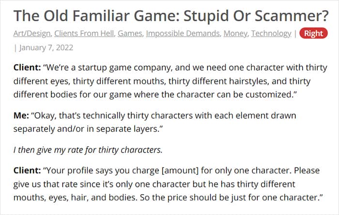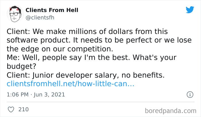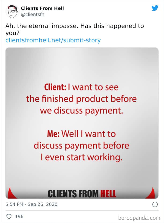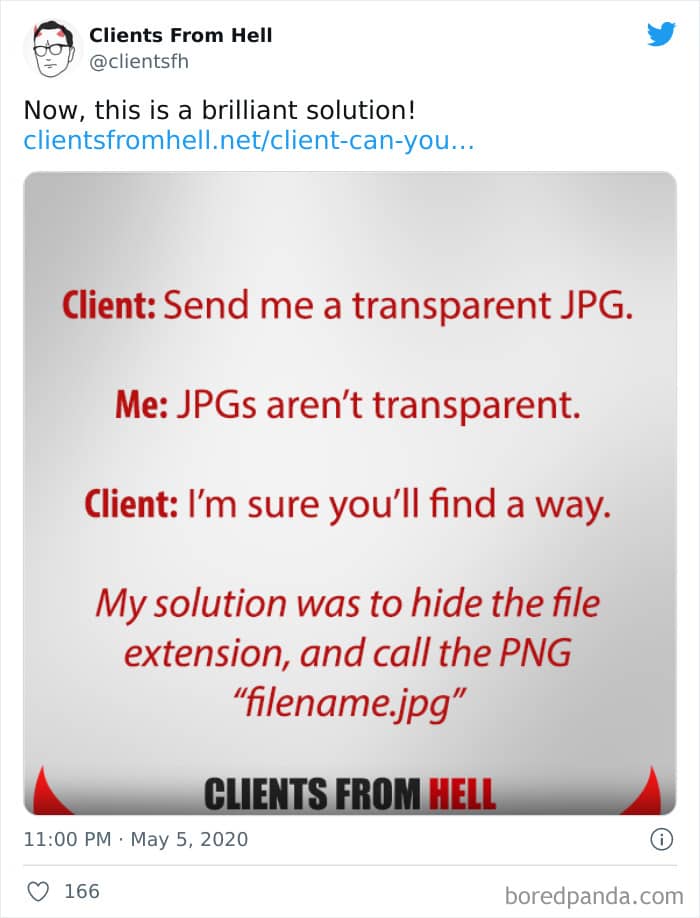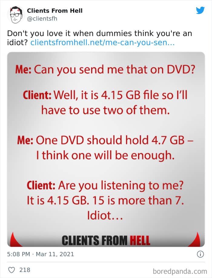 The ‘Clients From Hell’ project (now rebranded as ‘Not Always Right’) shares stories about the most memorable and hilarious tales of dealing with rude, entitled, or simply downright dumb customers. Today we’re featuring the experiences of freelancers and designers. Remember to upvote your fave posts as you scroll down, Pandas.