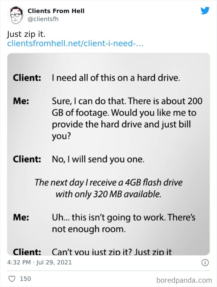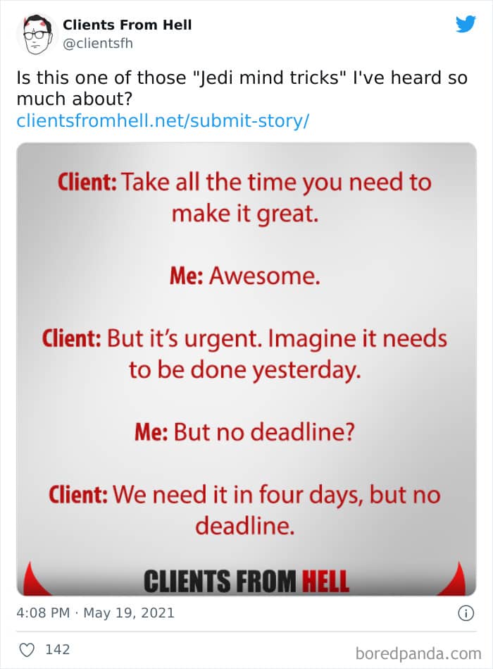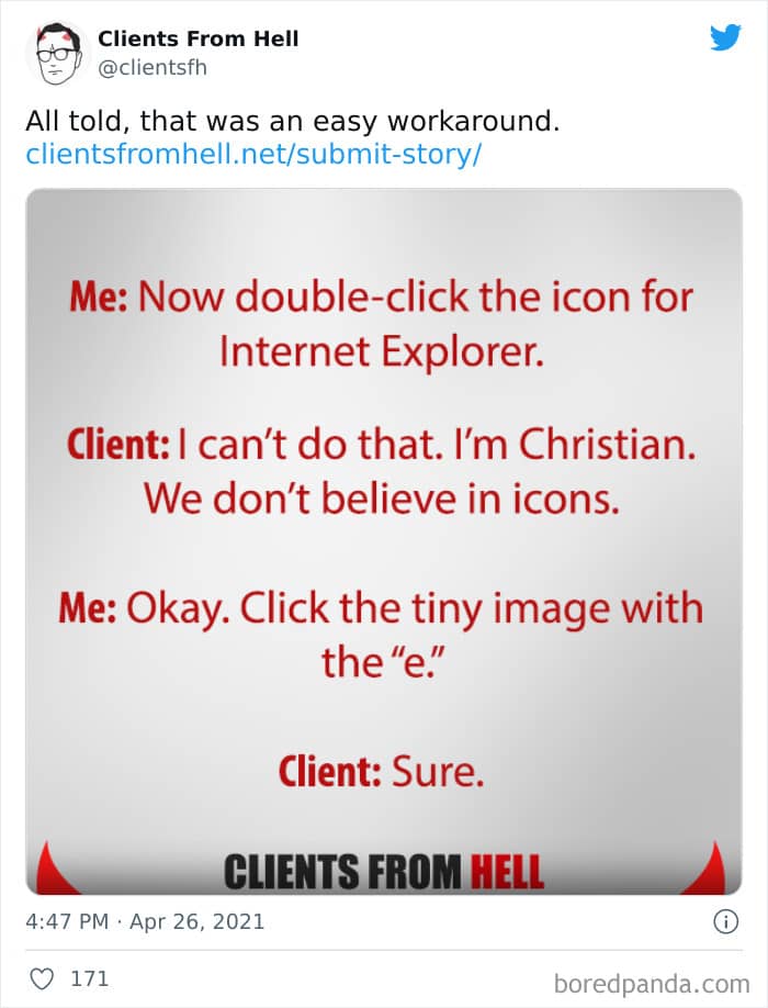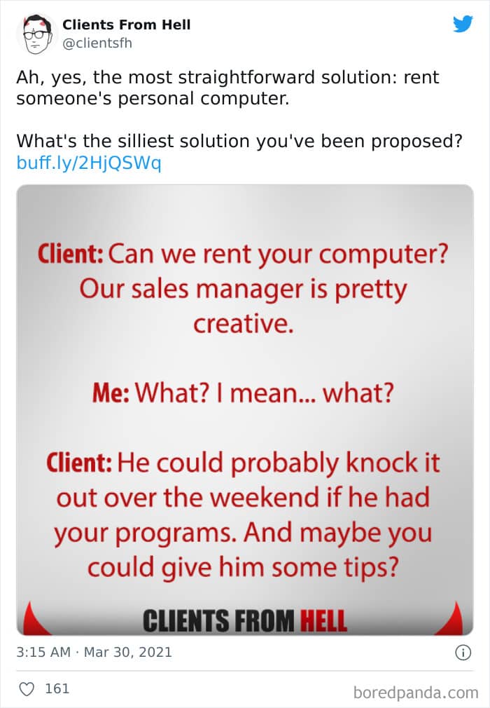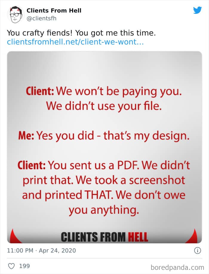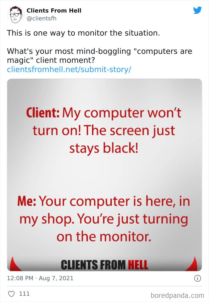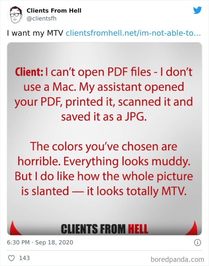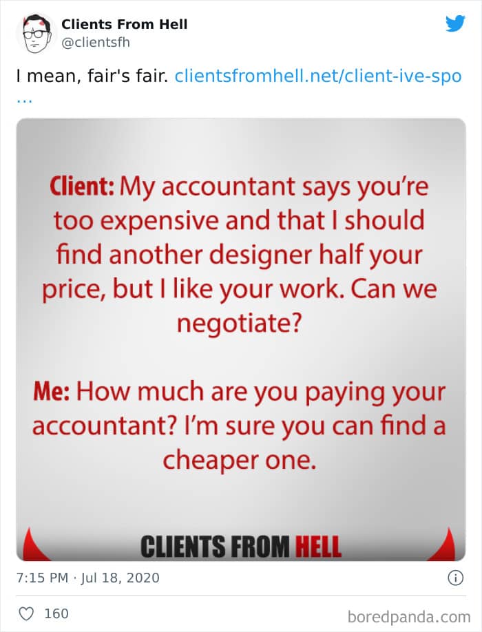 The ‘Clients From Hell’ project (now rebranded as ‘Not Always Right’) shares stories about the most memorable and hilarious tales of dealing with rude, entitled, or simply downright dumb customers. Today we’re featuring the experiences of freelancers and designers. Remember to upvote your fave posts as you scroll down, Pandas.