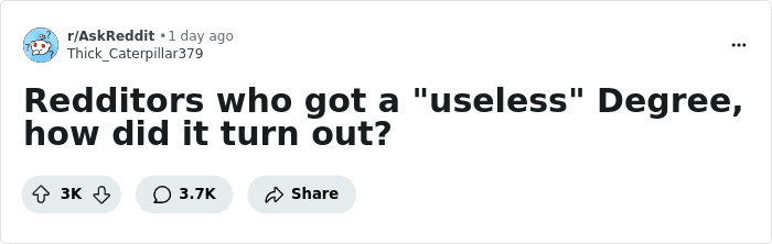 At the same time, there are some who argue that getting a higher education degree in the modern day isn’t worth it. Especially if a person decides to go for something that is considered a “useless” degree.
