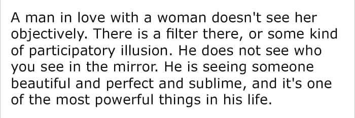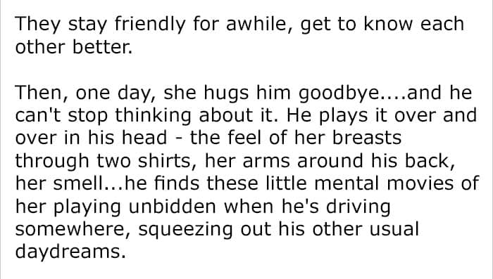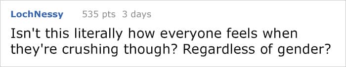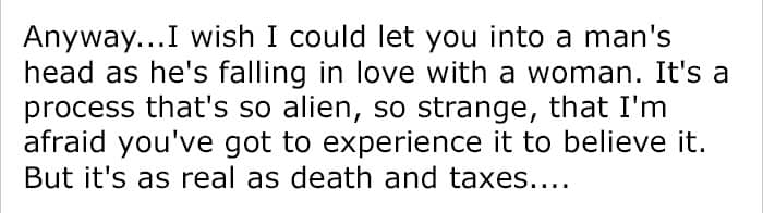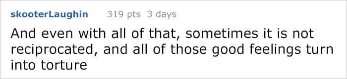 “I am one of those people that folks seem to confide in, though. Maybe they know they aren’t going to shock me, and I’ll give honest advice if they ask. I’m also very respectful of people’s privacy. I think I was driven to respond to her because I saw some parallels in our experiences that might not be obvious to her, or to the casual reader. We’re also inherently different enough that my perspective might benefit her, perhaps give her a new way to look in how to find love.”