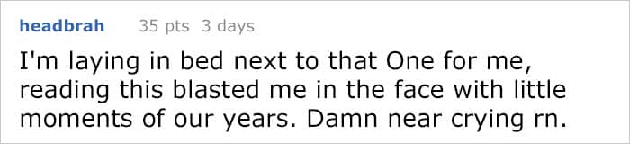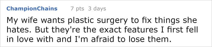 The post attracted tons of comments offering all kinds of insightful life advice and experiences. One really stood out, however, and it was written from a man’s perspective. The former Marine, who sustained severe injuries after his helicopter got shot down over Iraq, felt let down by Veterans Affairs in his area and had to rely on family and friends for support when times were tough. He knows how it feels to struggle with body issues and gives support whenever he can.