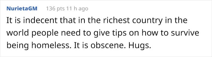 The former homeless person shared practical tips on how to live without a home in this honest post