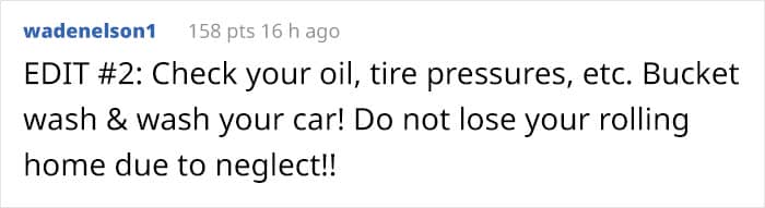 “I cannot tell you how it hurts me to have to write this,” the man who has lived without shelter and had to car camp at some point in his life said in the honest post on Imgur. He then proceeded to list all the know-how useful for anyone who may ever find themselves in this stressful situation.