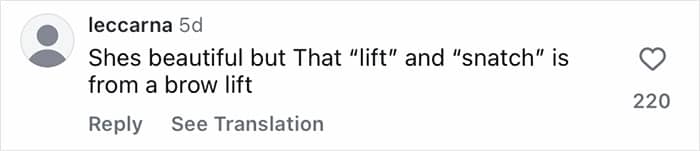 “Botox and surgery, just tell people the truth,” another claimed.