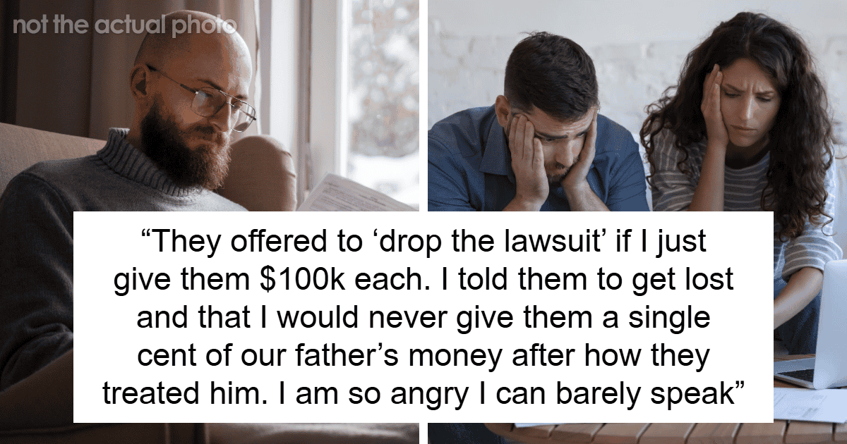 Now the siblings have lawyered up, accusing OP of using “undue influence” and demanding $100k each to make the problem disappear. OP has point-blank refused. Sure, the legal battle may cost a lot, but when someone disrespects a parent then demands a payout, beating them in the court they dragged you into would be pretty much priceless.