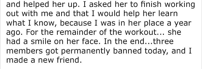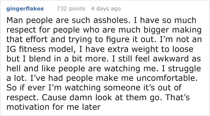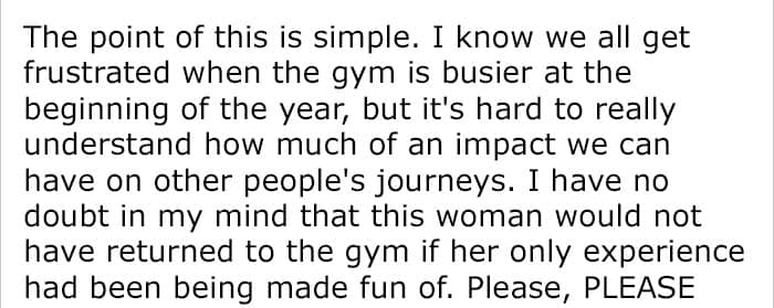 So when somebody turned to Reddit for advice to help the newcomers adapt to the gym environment with the minimum of fuss, there were plenty of useful tips to make everyone’s life a bit easier. One story stuck out above the rest, however, because it shows the importance of understanding and empathy. Sure, that novice doing endless curls at the squat machine might be a bit annoying right now, but that was you once upon a time. What people need in an intimidating new environment is encouragement and support!