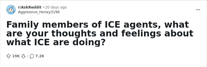 But what happens when the literal, five-alarm fire at the center of the national conversation is a little closer to home? Even under your own roof? An online community posed this exact, incredibly loaded question to the family members of ICE agents.