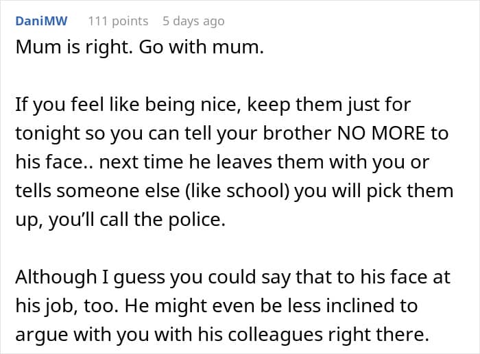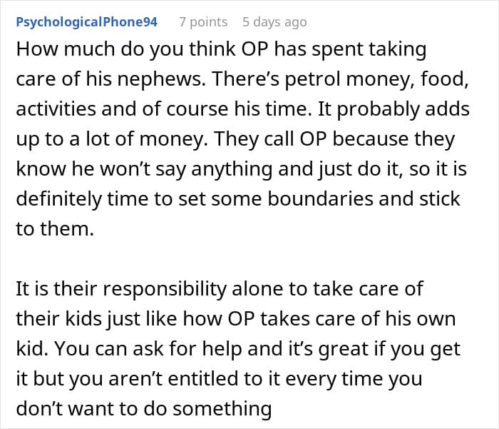 We reached out to Reddit user Ok-Statistician3072 to gain a bit more insight about the situation, and he was kind enough to share even more of his side of the story. We were curious if him and his brother have always had a tumultuous relationship, or if they had been close before he had become their go-to free childcare worker.