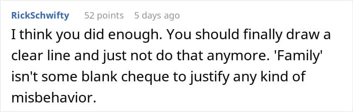 It’s unfortunate that this father had to end up blocking his family members, but it seems like that was the only option left to look out for his own family and his sanity. We can only hope that over time, his brother and sister-in-law will learn from their mistakes and work towards mending their relationships. We would love to hear your thoughts on this situation in the comments below, pandas, and if you’ve ever had to navigate a similar situation with your relatives, feel free to share your personal stories as well. Then, if you’re interested in reading another We article featuring a parent who feels entitled to free childcare, you can find that story right here.