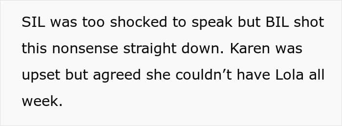 Turns out, Karen had cooked up a plan where she’d just casually take Lola home after daycare every Monday and keep her until Friday. The baby’s parents could have her on weekends like some sort of shared custody arrangement, with zero prior discussions, of course.