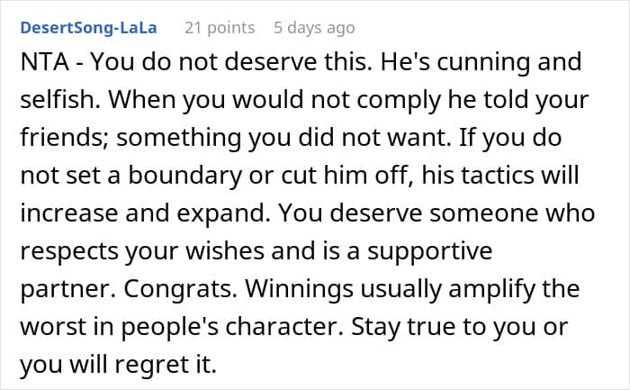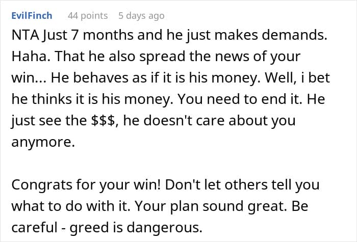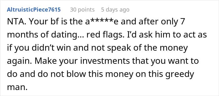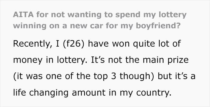 One redditor shared just how much drama came into her life after she won one of the top lottery prizes. She was hoping to invest the money, as well as to use it to set her family members up with proper places to live. Her boyfriend of 7 months, however, had other plans. You see, he wanted a new car. A Tesla, in fact. And he began pressuring his girlfriend and spilling the beans about her winnings to everyone in their social circle.