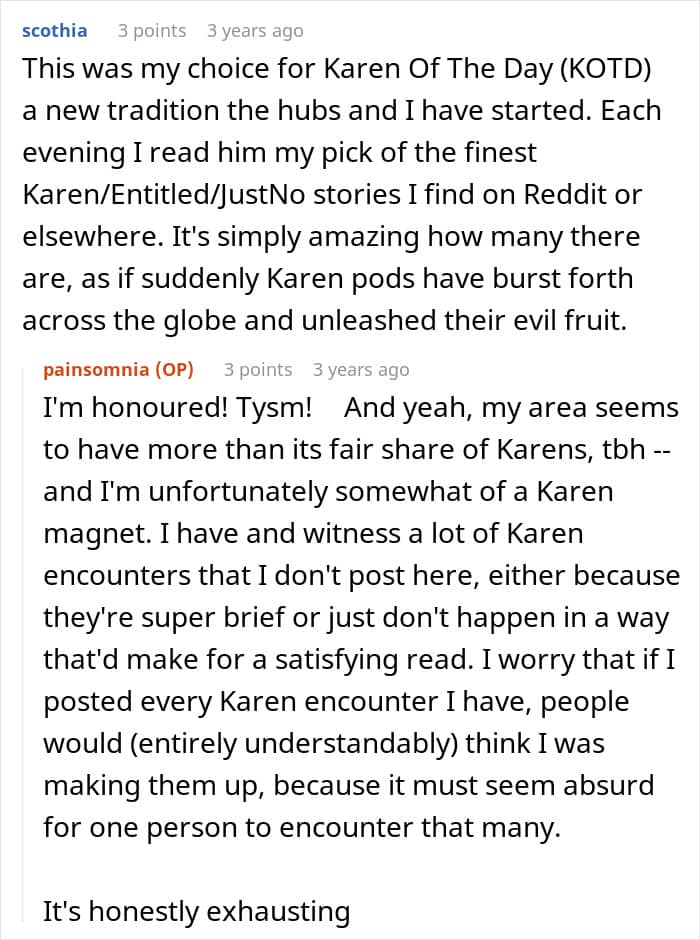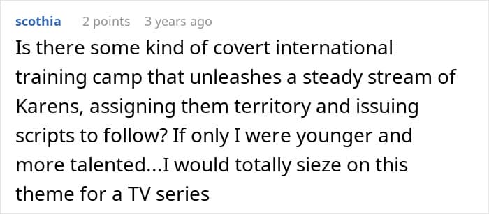 While the word we use for this sort of person, i.e. “Karen” has only been around for a decade or two, but there is no denying that folks in customer-facing roles have had to deal with them since the dawn of time. This story even manages to demonstrate that you can literally be sitting at the mall, minding your own business and still not be protected from some random stranger’s entitlement.