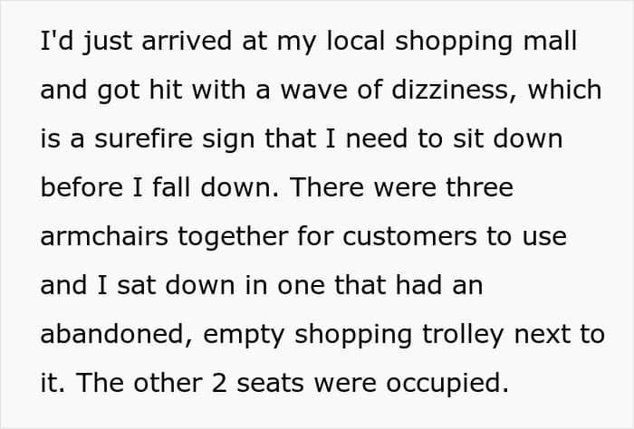 A netizen shared their bizarre encounter with a “Karen” who decided that she had “reserved” a random public seat in a mall. We reached out to the person who posted the story via private message and will update the article when they get back to us.