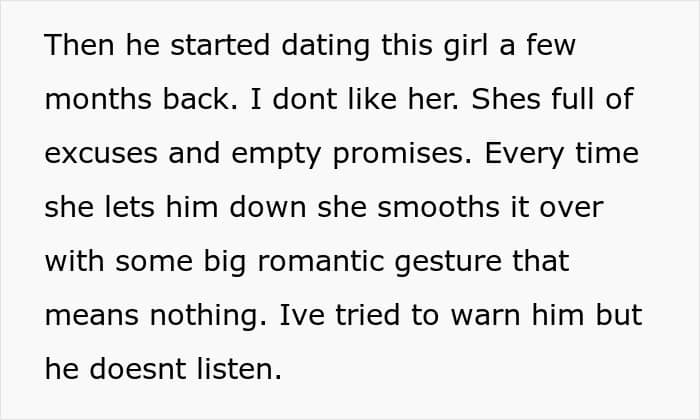 The poster always knew that their son was quite smart since he got a scholarship to a good university and managed everything else well in his life. The only problem was that when it came to his relationship, he seemed to have blinders on about his girlfriend’s behavior, and didn’t mind even when she let him down constantly.