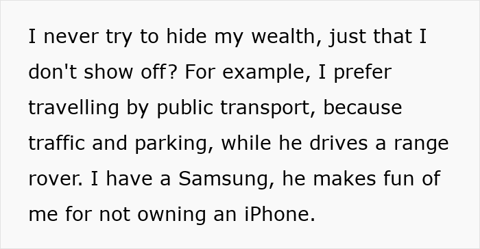 Today, we dive into a tale about a “gold digger,” but exactly who it is, you’ll figure out soon. The original poster (OP) lived a pretty ordinary life, used public transport, had a Samsung phone, and ate at normal places, despite working in finance and earning as much as her doctor fiancé. Our story started when they decided to get married, and both sets of parents got involved in the planning.