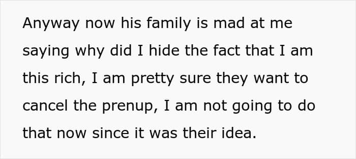 They were so shocked by this that they accused her of “hiding” her wealth from them, and even expected her to reverse the prenup