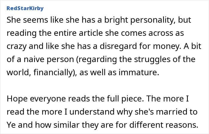 Kanye also liked a social media post that referred to Bianca as a “subservient extension to her master” who does “whatever Ye tells her to do without caring what anyone else has to say.”