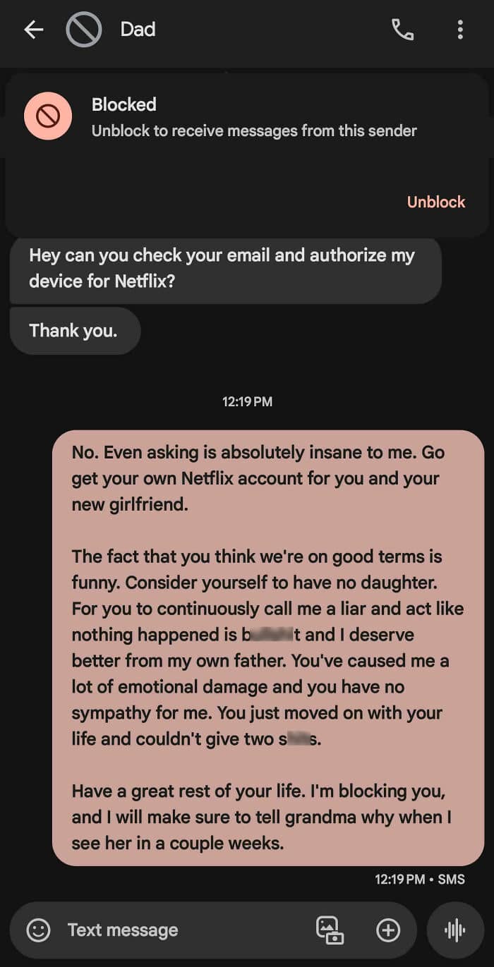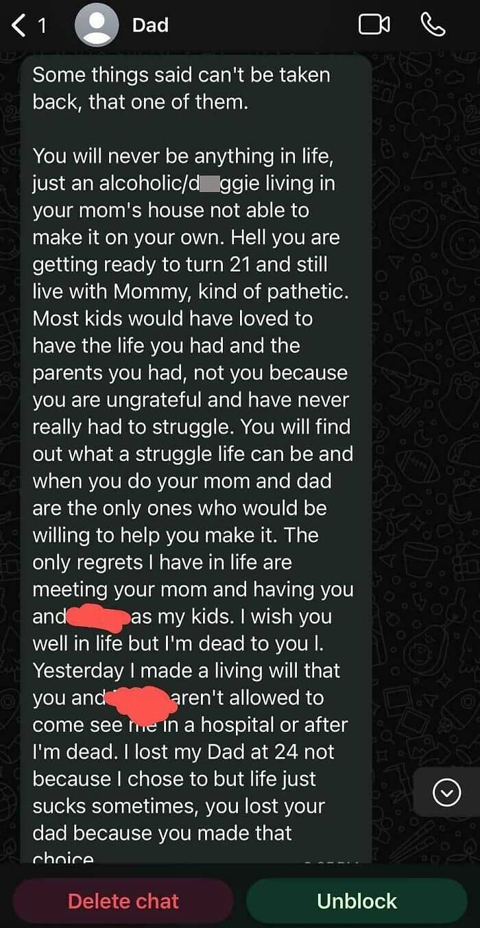 #16 My Dad’s Been Blowing Up My Sister’s Phone These Last Couple Days So I Finally Blew Up On Him. I’ve Put Up With This For Two Years And It’s Finally Over. Saddening