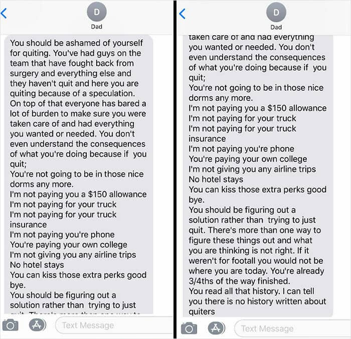 #11 2 Years Ago After My 8th Concussion I Decided To Quit Football. This What My Dad Texted Me In Response To Me Quitting Because Of My Concern For My Future Health
