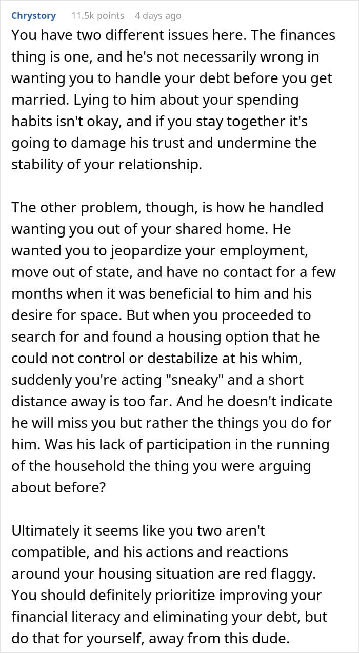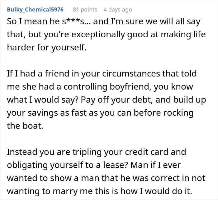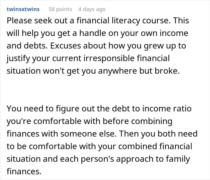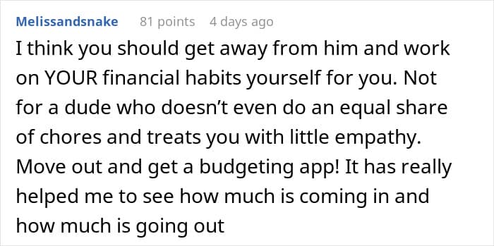 RELATED:A man put pressure on his girlfriend to fix her finances and pay off debt