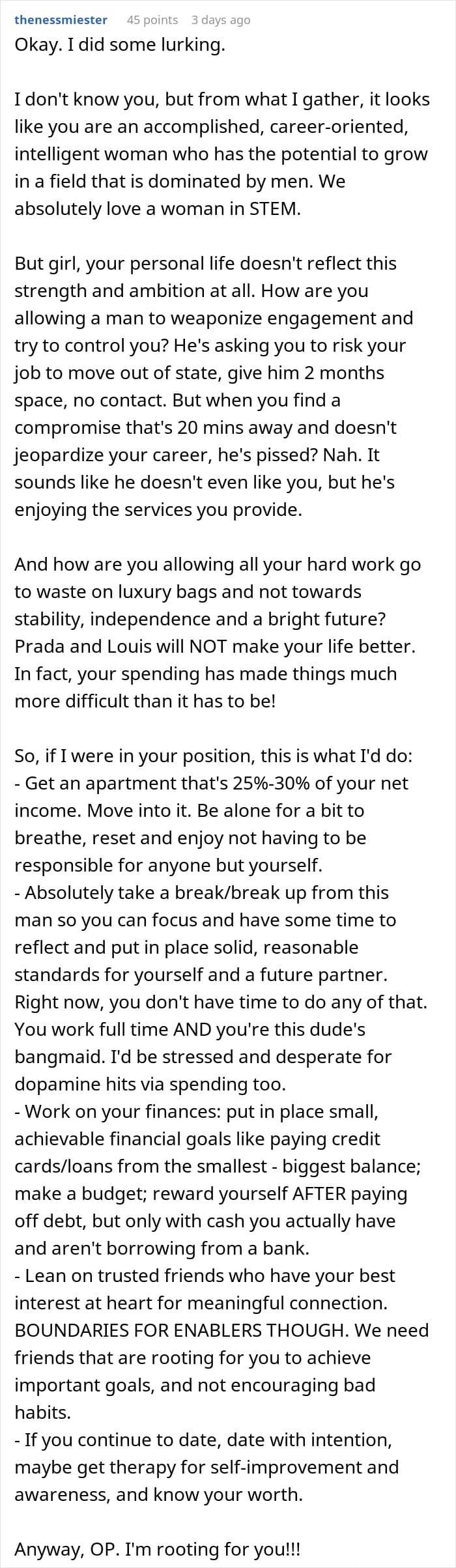 The readers had some words of wisdom to share with the woman