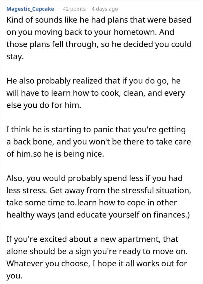 Many asked her to move out and live in her own apartment