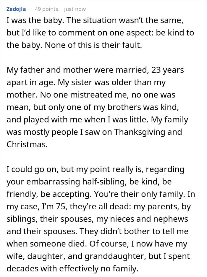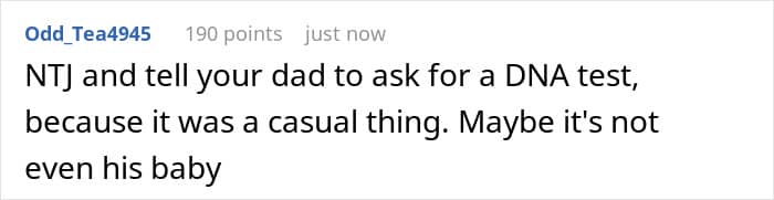 Now, her father had been seeing a woman and it hadn’t been up to a year yet. However, she got pregnant and then disappeared, so his plan is to take full custody of the baby once it’s born. This was fine for the OP up until the point where the father began outlining how the OP and her siblings would help raise the child.