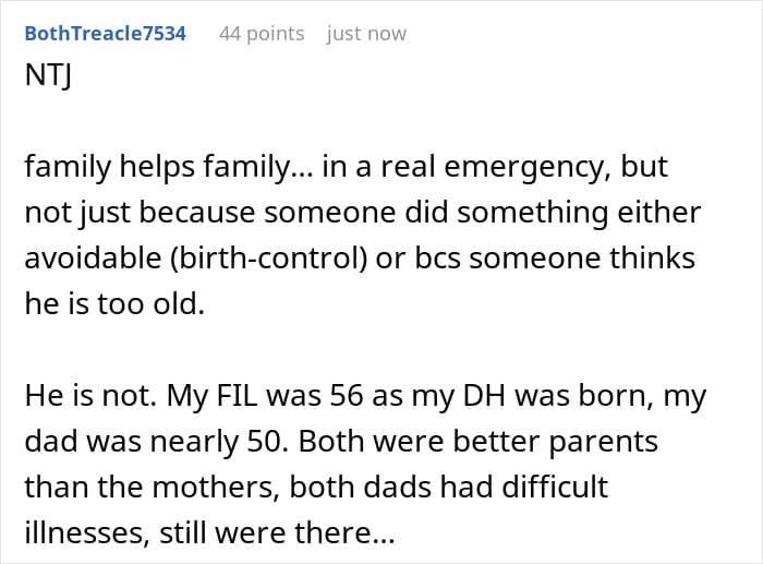 He added that he had made so many sacrifices for them, and the OP acknowledged this. However, she insisted that it wasn’t the same thing because he couldn’t expect them to drop their own responsibilities to take care of his child. She assured him of their love for him, but this was his choice and he would have to take sole responsibility for the child.