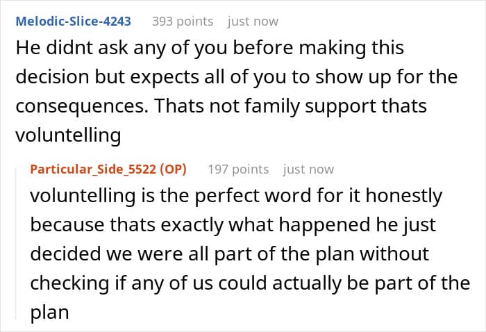In fact, the OP noted that he wasn’t asking them but rather telling them about their details. Of course, they all push back, explaining that they simply don’t have the capacity to take on such a role, but it didn’t sit well with their father. He accused them of being selfish and reminded them that “family supports each other”.