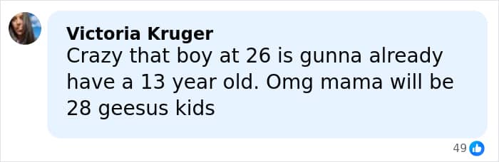 “It isn’t common in my area, but it does happen. When I was a teacher in Illinois, I had a 15-year-old student who became pregnant by a 12-year-old boy. That child is now a freshman in high school,” one person wrote.