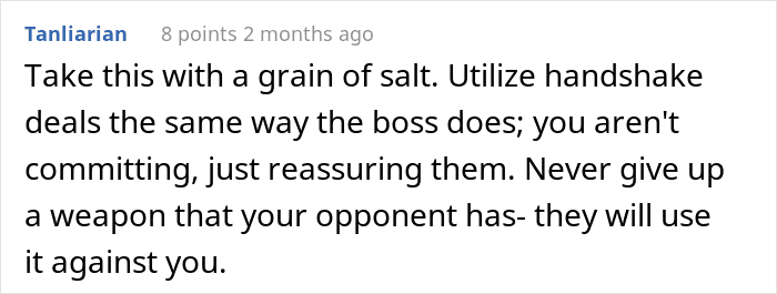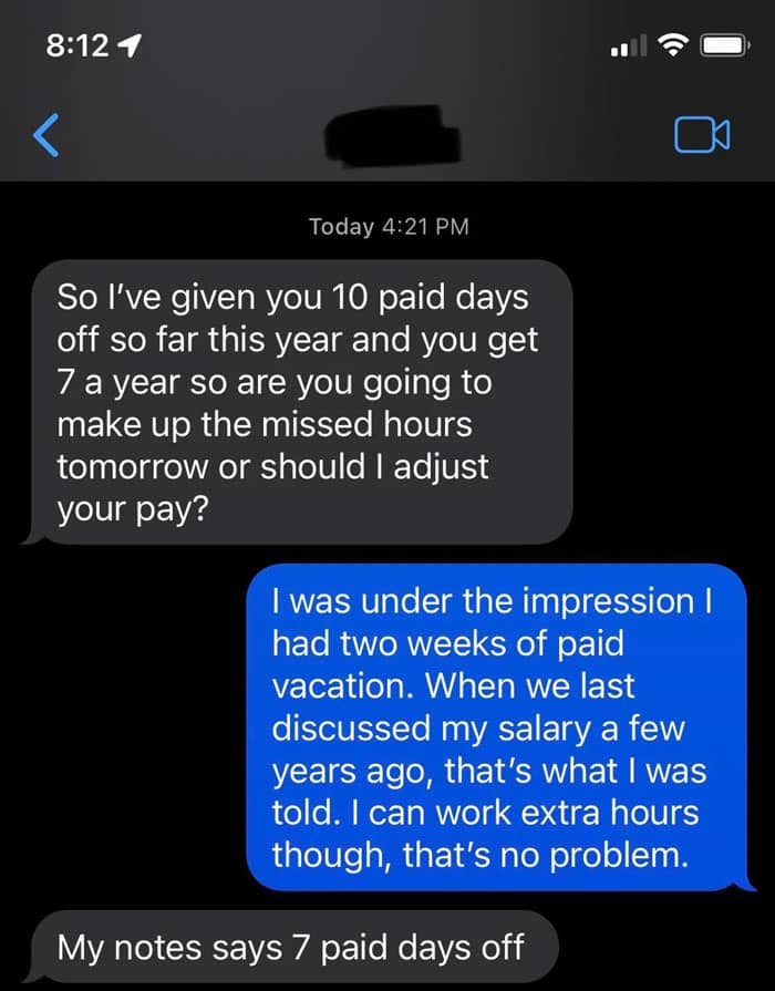 Redditor u/obdx2 is one such employee. They shared a bunch of screenshots of their message exchange with their boss on the r/antiwork subreddit. The two chatted about how much paid time off the OP had, and apparently, the boss changed their ‘handshake deal’ from two years back. The employee resigned then and there. Scroll down for the full story and to see how the internet reacted, dear Pandas.