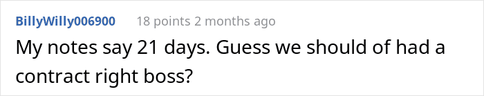 The employee sent over their notice of resignation after realizing that their boss had lied about the two weeks of paid time off. It just goes to show that empty promises are rife even in professional settings. When you find yourself in a situation where it’s your word against someone else’s, the odds are (unfortunately!) that the person with more influence will come out on top.