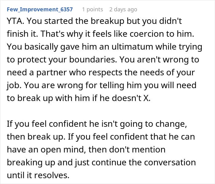 If you have ever spent five minutes behind the velvet curtains of a theater, you know that the “magic” of the stage is actually held together by industrial-strength hairspray, frantic whispers, and the sheer willpower of stagehands who haven’t slept since tech week started. It is a world where the glamorous leading lady is often just a very tired person trying not to trip over a stray power cord while someone frantically zips her into a hoop skirt. When we look at the tension between a blossoming acting career and a four-month-old relationship, we find ourselves at a very specific, sweat-soaked intersection: the difference between a personal boundary and a controlling demand. In the case of our protagonist and her boyfriend, John, the conflict isn’t really about spandex or stage managers, it’s about whether a partner has the right to rewrite your professional job description to soothe their own insecurities.